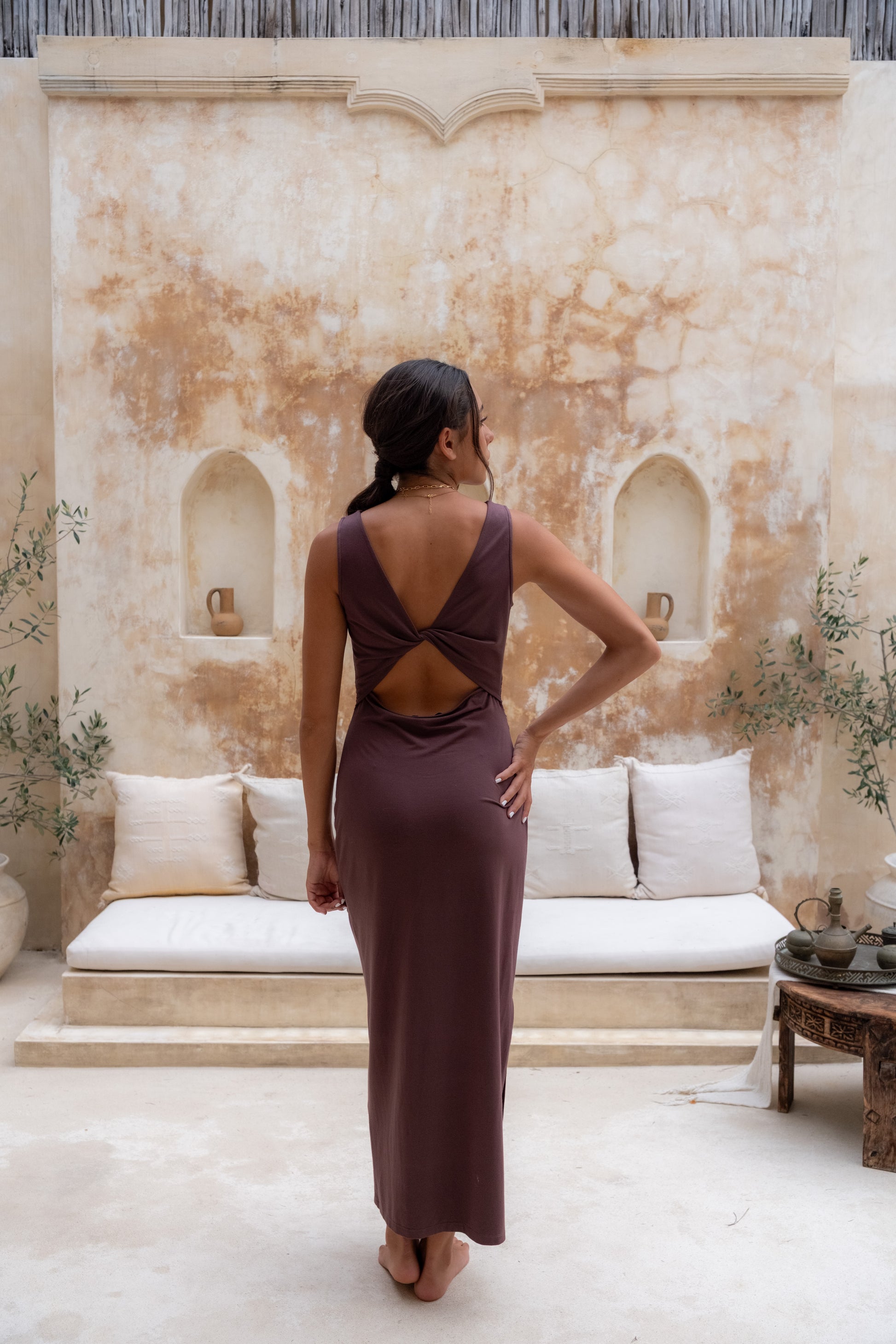 The Aria is the sleeveless sister of our beloved Lina Dress; same fluid movement, same luxurious bamboo, now in a sleeveless, reversible design. Wear it high-neck for quiet elegance or turn it around for a soft plunge - versatility meets refinement.