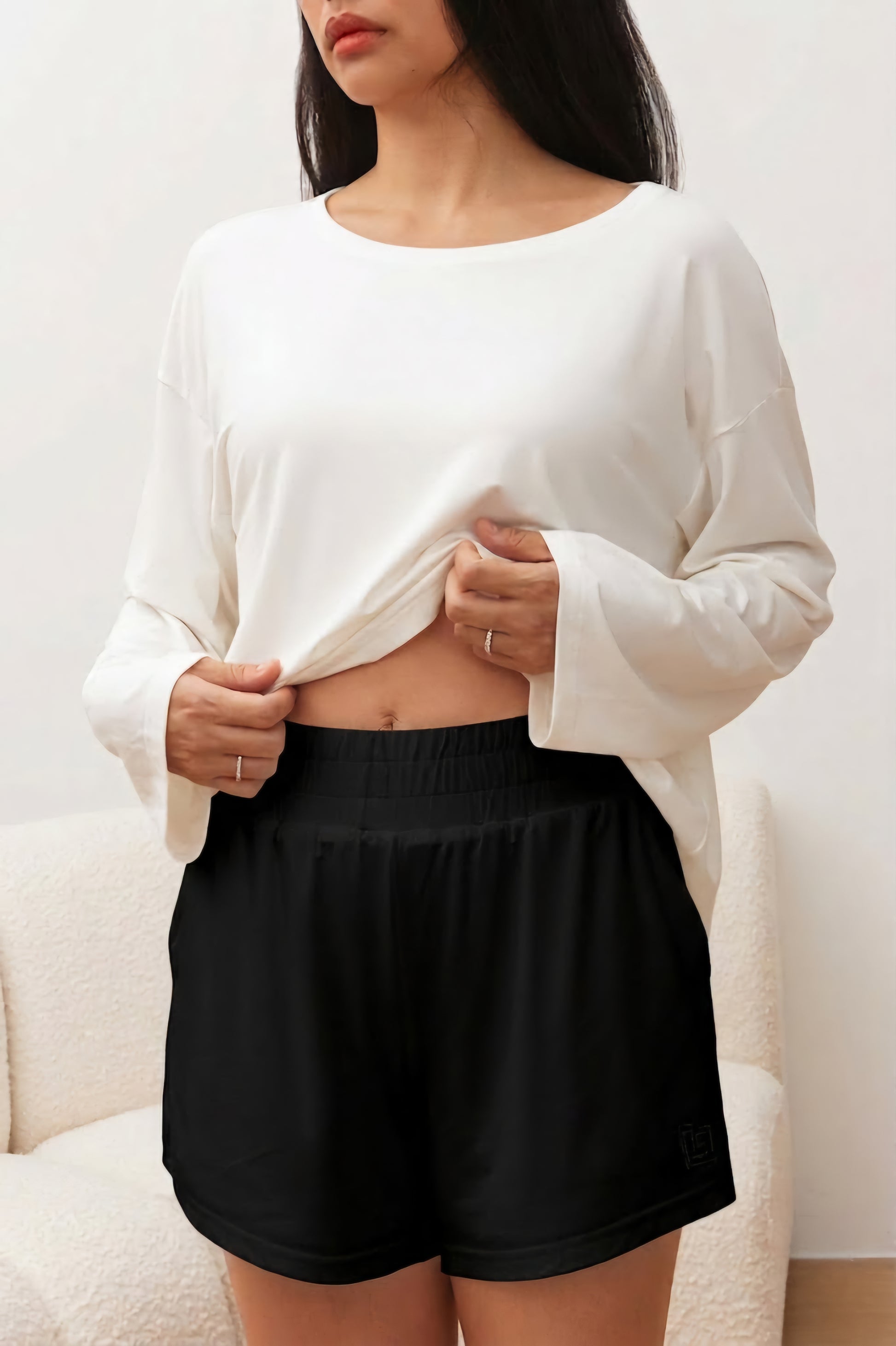 Meet your most functional shorts ever owned. Our bamboo oversized shorts in Mocha feature a thick elastic waistband for a secure fit, plus deep pockets to hold your essentials. The breathable bamboo fabric keeps you feeling fresh. Whether you’re lounging, running errands, or styling them up for a casual day in, these shorts have you covered. Wear it on its own or with its matching top